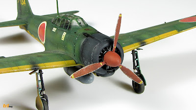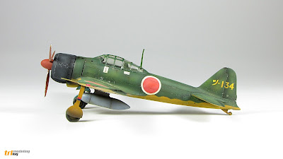 Airfix 1:72 Zero, released in 2011, is probably pretty well known at this point. So let's keep this introduction short- nice, simple and cheap kit, easy to build. Not as elaborate as Tamiya or Fine Molds, with a little bit to heavy panel lines and some other minor flaws. One decal option (printed by Cartograph), with messed up painting instruction.