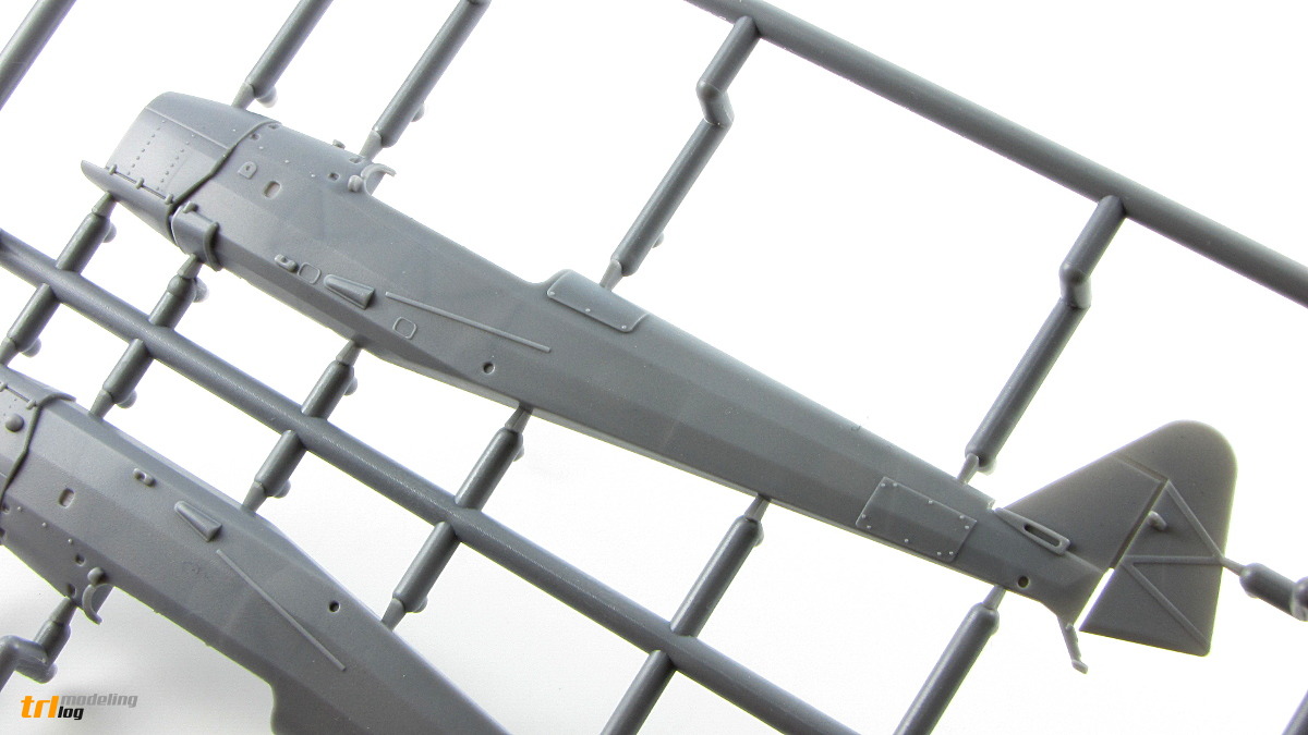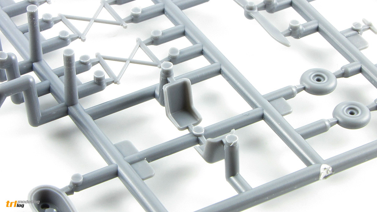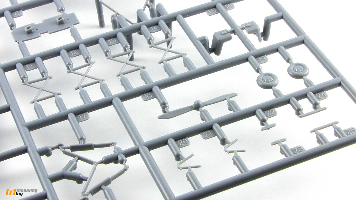 First sprue contains fuselage halves accompanied by some details typical for PWS version. In the second packaging (RWD-8 DWL), the fuselage pieces are replaced with ones typical for civilian version.