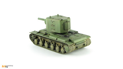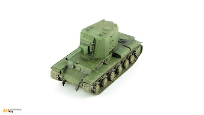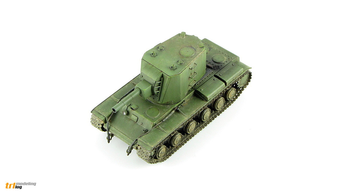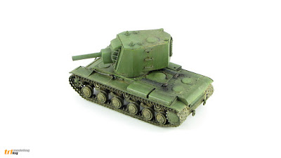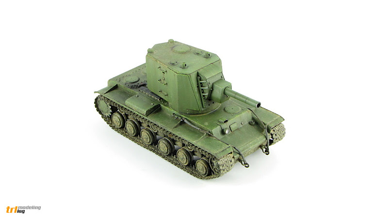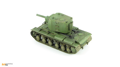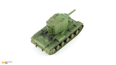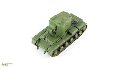 The miniature depicts a big turret KV (KV-2 pre-series vehicle) from the 2nd Tank Division of the 3rd Mechanised Corps., operating in Lithuania during spring of 1941. This particular vehicle, probably factory number U-4, ended its Red Army career being stuck in a swamp and subsequently abandoned.