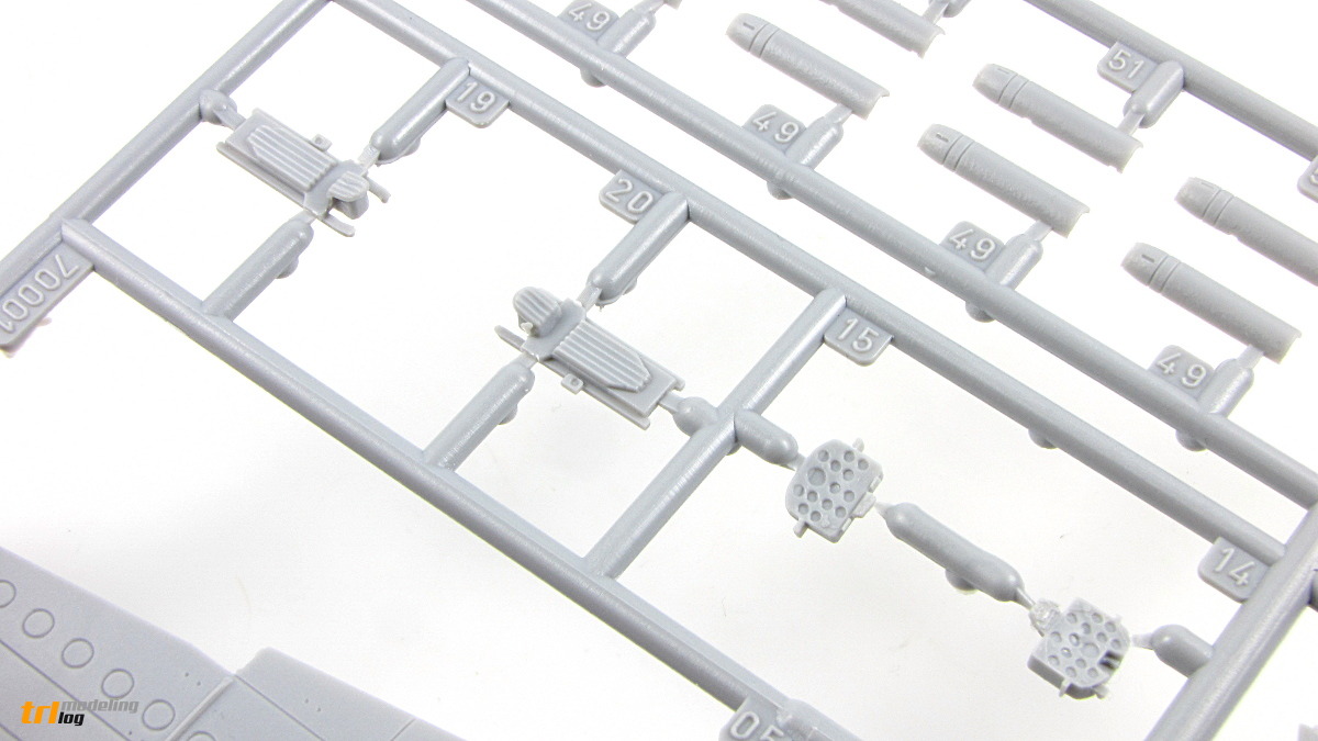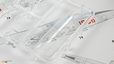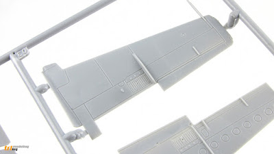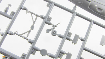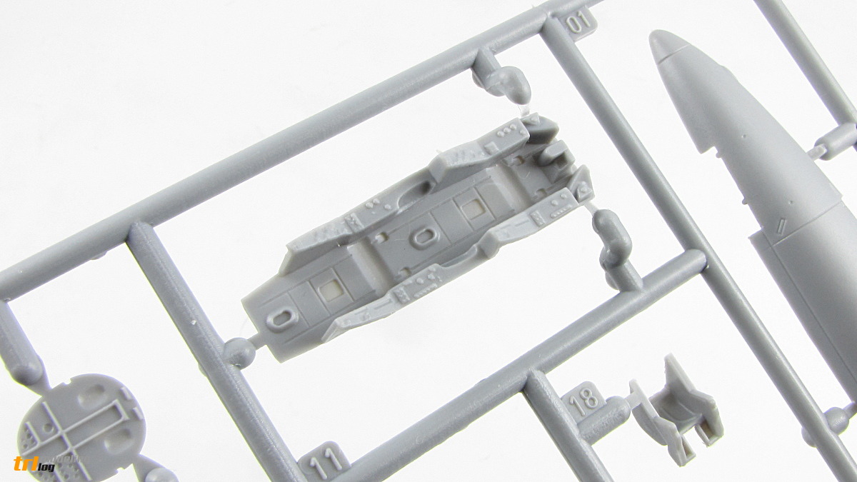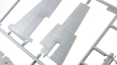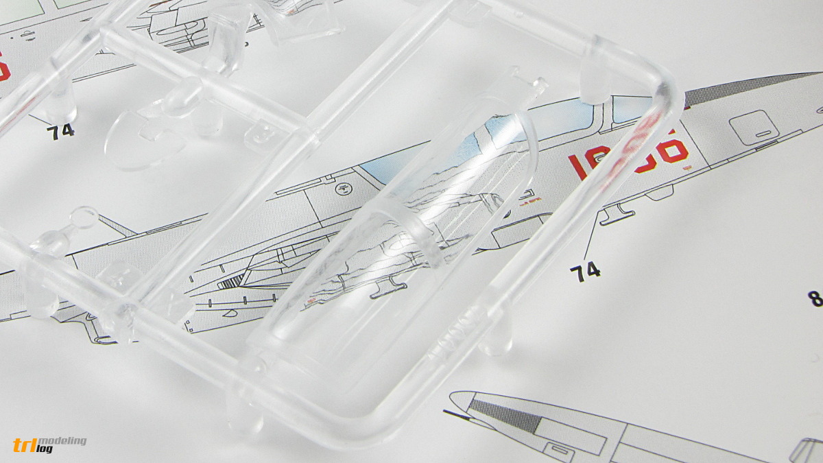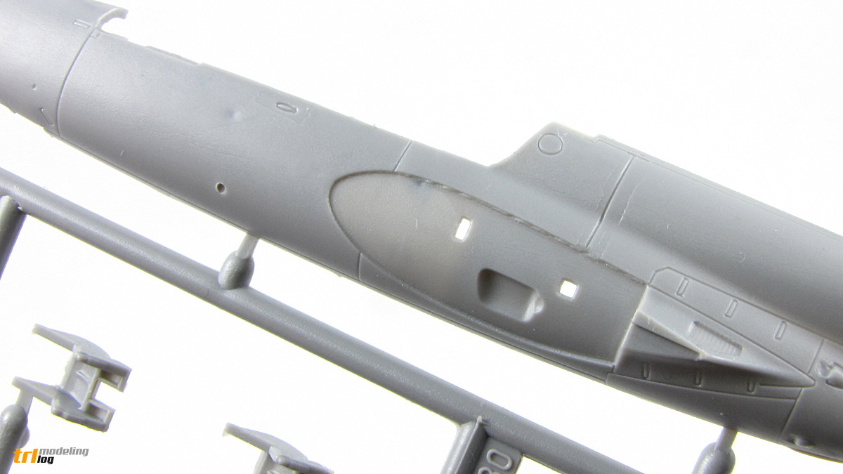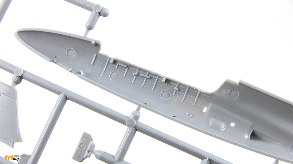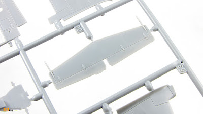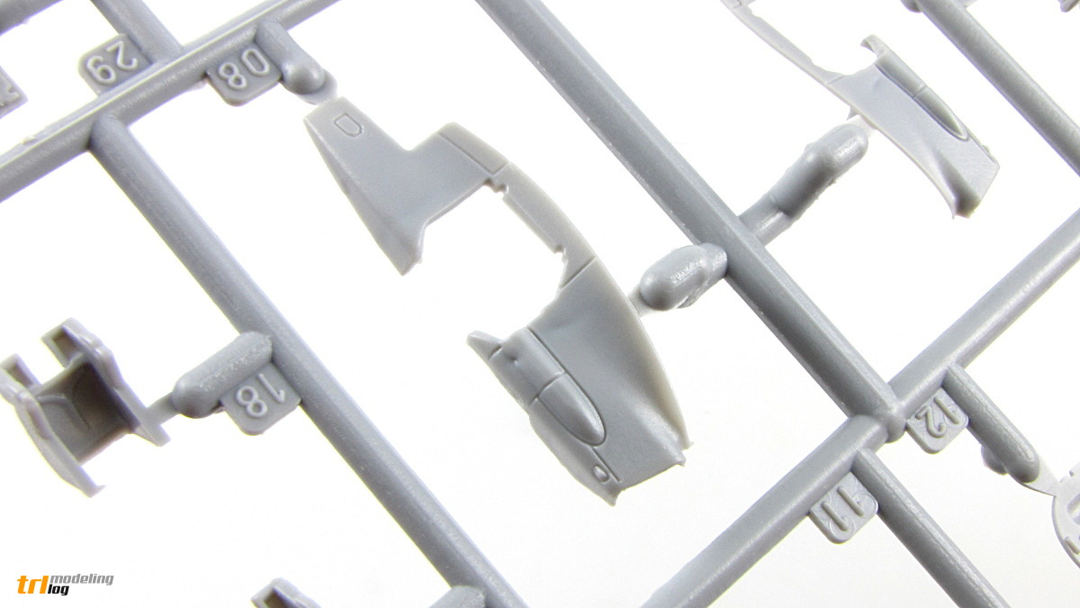 Transparent elements looks pretty nice- clear and molded without any flaws. Little bit thick maybe, but completely acceptable. However close inspection of the gray plastic sprues raises somewhat mixed feelings. Overall parts look good, but here and there you find some little flaws that give almost short-run like impression of the molding. For example- close surroundings of a certain panel lines on a fuselage halves clearly need some special attention.