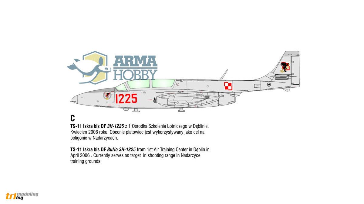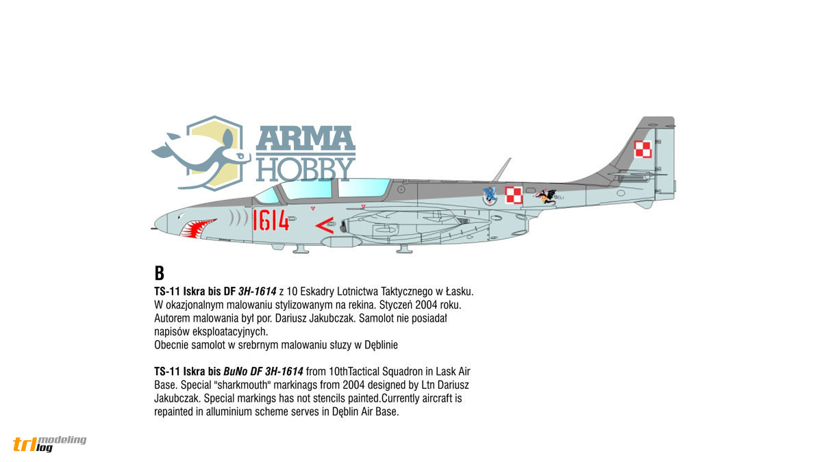 It's not a surprise that such iconic (at least for Poles) aircraft was in a model kit form available for years. If I'm correct, the first TS-11 plastic miniature (although very simplified) was released in 1960' by Ruch. However the most known and still widely available is the ZTS Plastyk kit. Re-boxed many times, also by others manufacturers like Aeroplast and Mastercraft, was (and still somewhat is) a very popular model despite its shortcomings. Don't get me wrong- it was a pretty nice kit, when it was released (in the nineties). But it's not up to a modern standards and years of production clearly made an impact on its overall quality. Therefore Arma Hobby announcement of a new plastic Iskra scale model in 1:72 was a nice surprise and the kit was eagerly awaited.