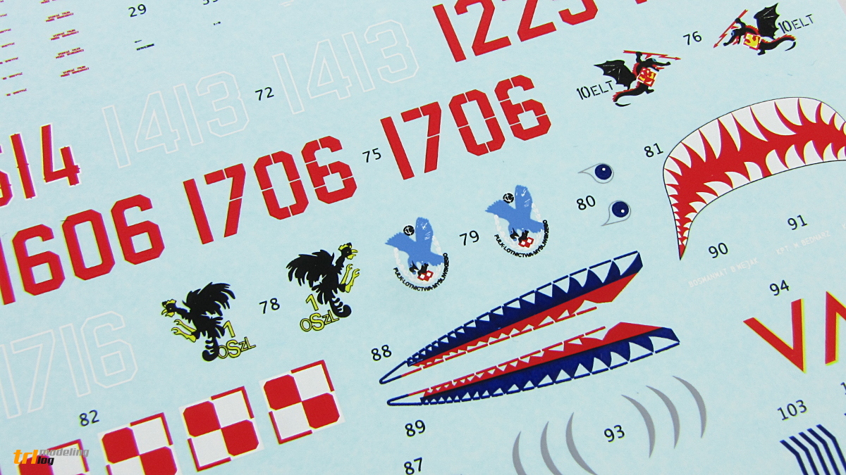 As was said earlier, kit contains markings for six different aircrafts. Five TS-11 from Polish Air Force and one belonging to Polish Navy.