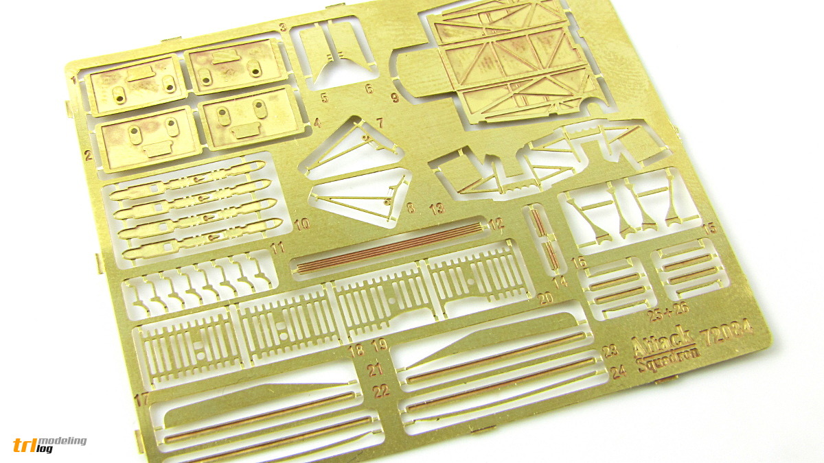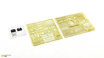 Inside- two light grey plastic sprues, a transparent one, two photo-etched details sheets, masks, resin seats and wheels. Times two of course. Other than that- decals, assembly instruction and short thank you letter from the manufacturer. Nice.