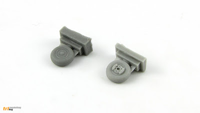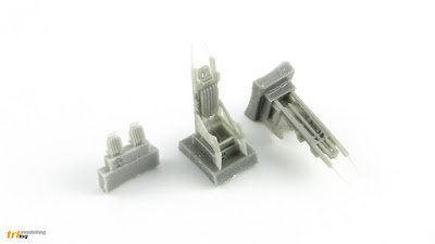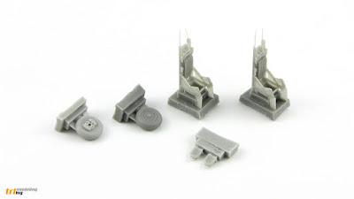Besides the plastic, "Deluxe Set" contains some additional details, which are also sold separately. Masks for the canopy and wheels, which looks OK, but can be properly judge only when used. Resin replacements for plastic seats and main wheels. The latter are somewhat peculiar choice, cause the plastic one aren't so bad either and in the finished model wouldn't be exposed very much. I would rather see resin rocket launchers than this, but I don't complain.