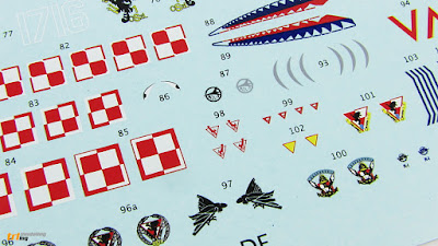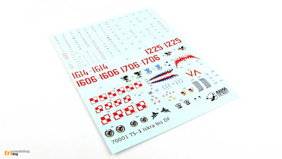 Sheet contains markings for six different aircrafts: two camouflaged, two in natural metal finish and two in special shark-themed schemes. There are also two set of stencils provided. One for camouflaged TS-11s and one for NMF machines (aircraft in special paint schemes didn't carry any stencils).