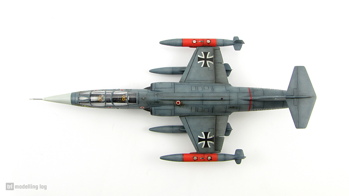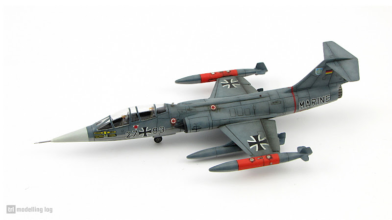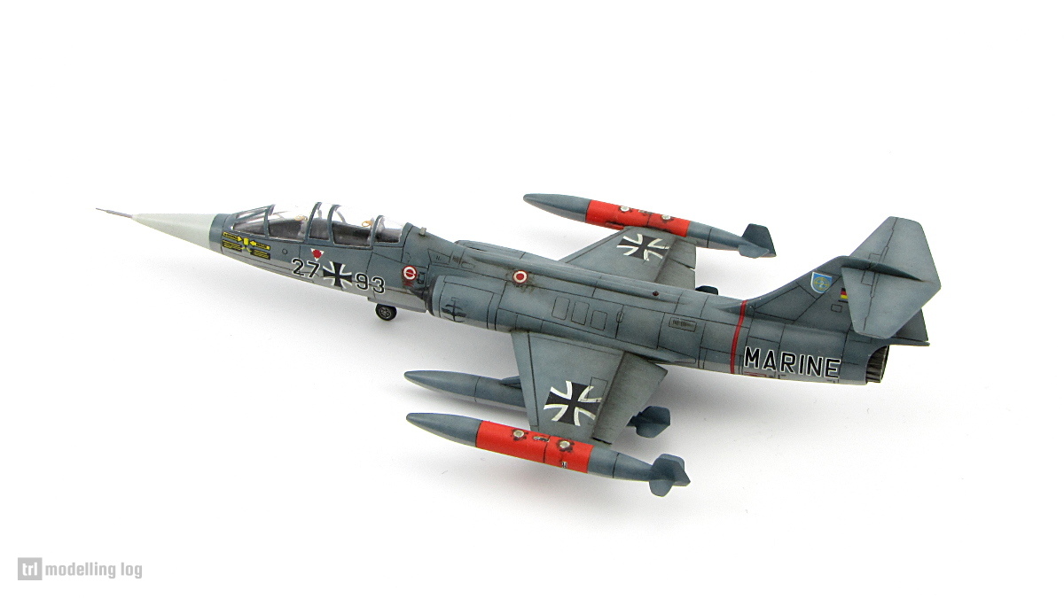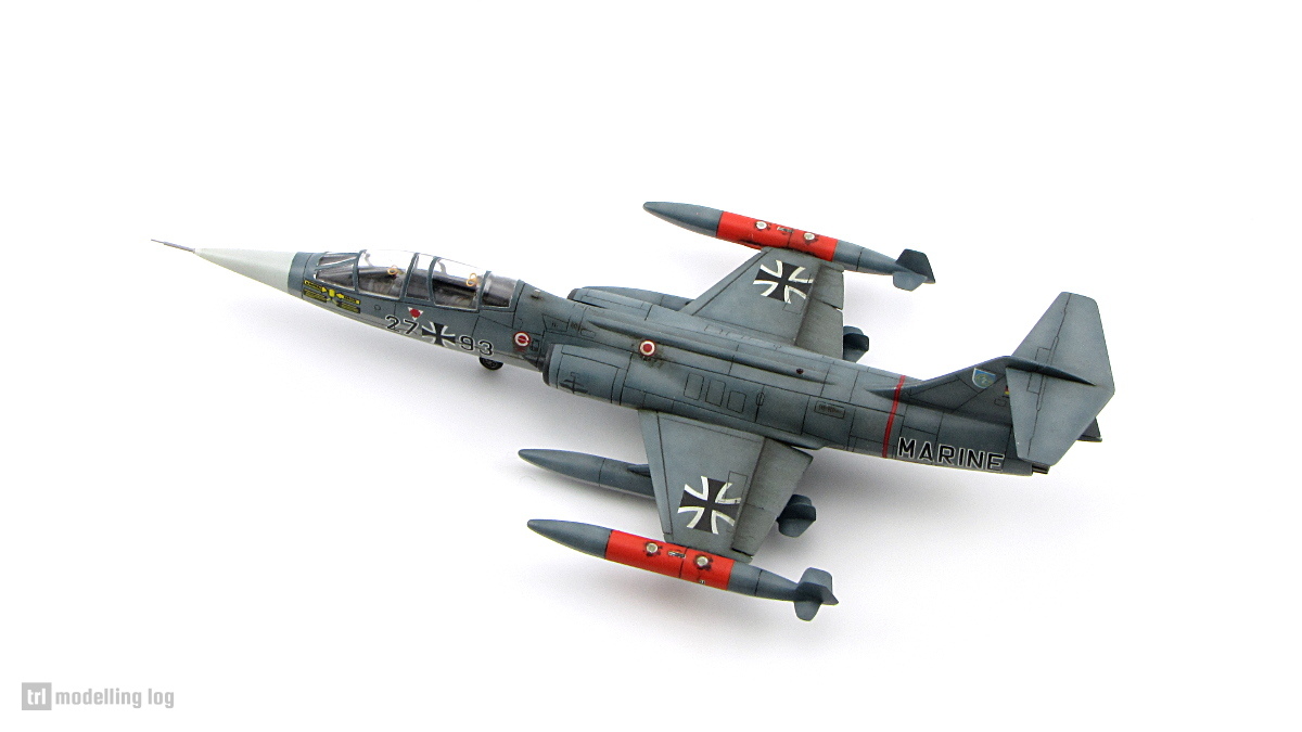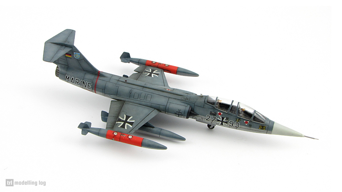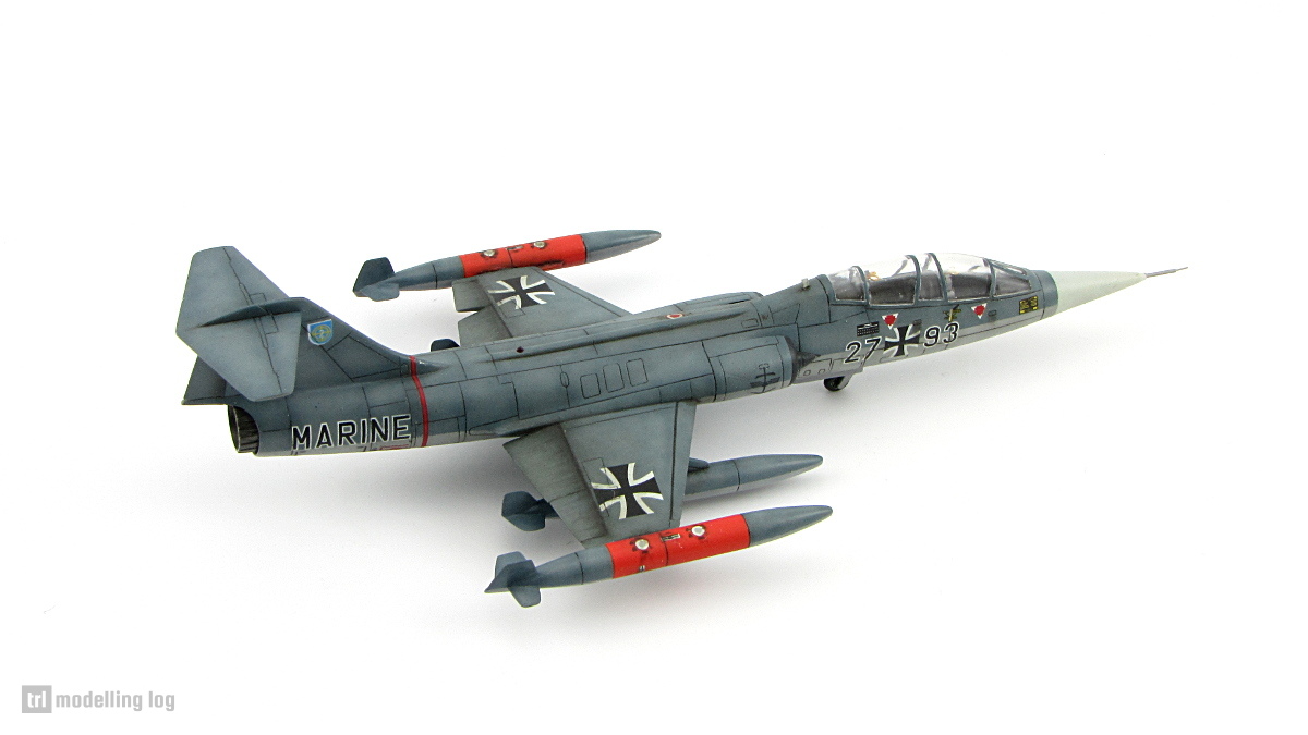 Miniature finished as a Lockheed TF-104G Starfighter, c/n 5921. This machine was used with side number 27+93 by Marinefliegergeschwader 2 (German Navy aircraft squadron), based in Egeebeck, around 1973.